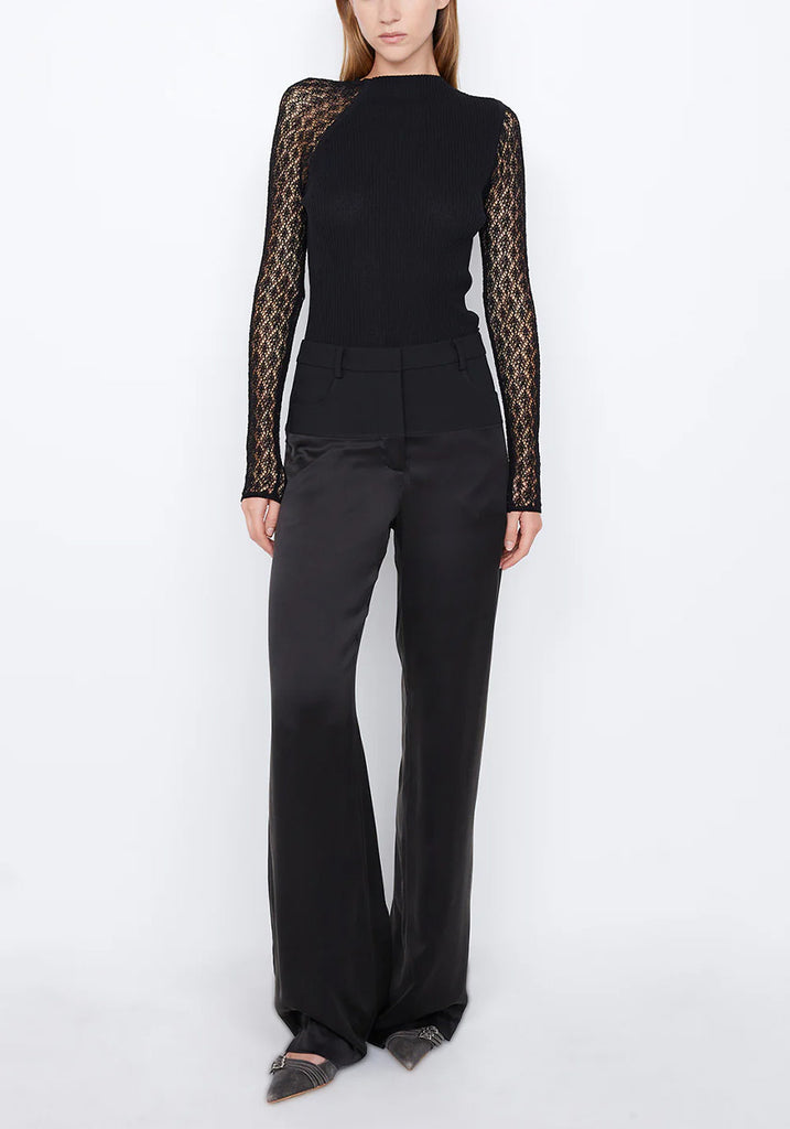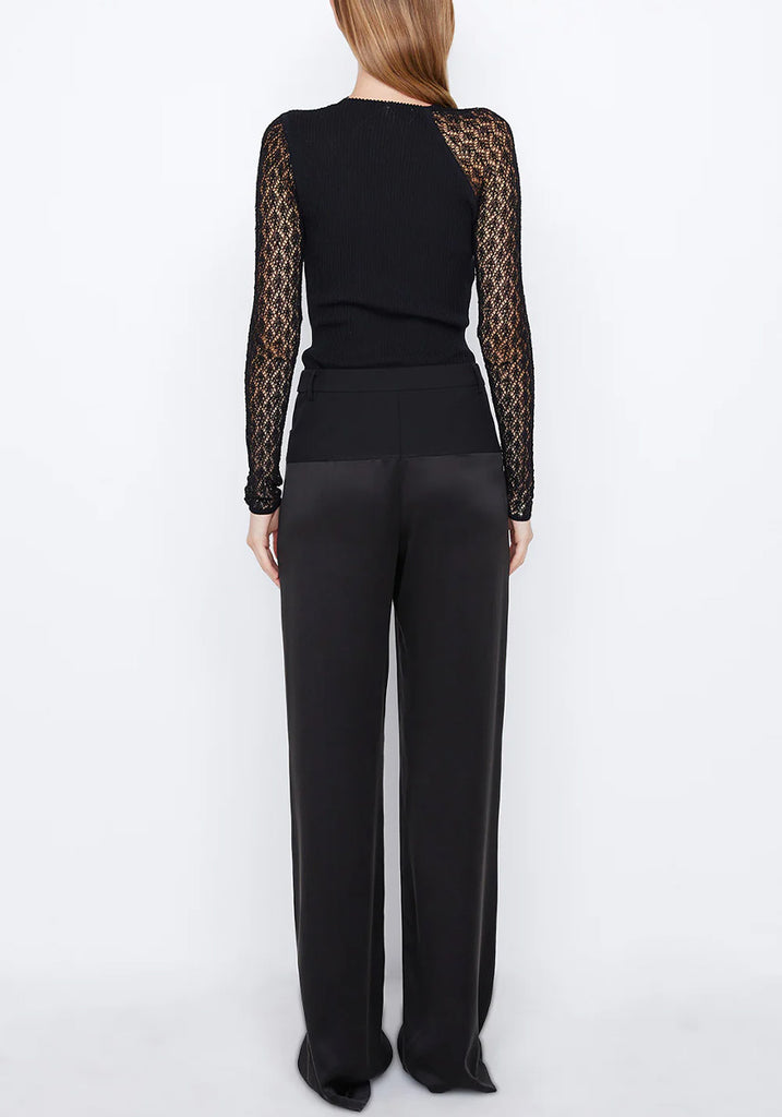 Crafted from a textured knit fabric, the BEC + BRIDGE Chantelle Long Sleeve Top features asymmetrical detailing across the sleeve, adorned with intricate crocheting and ribbed contrasts.