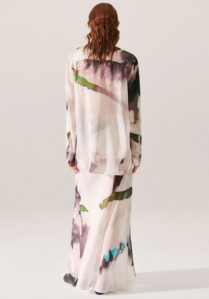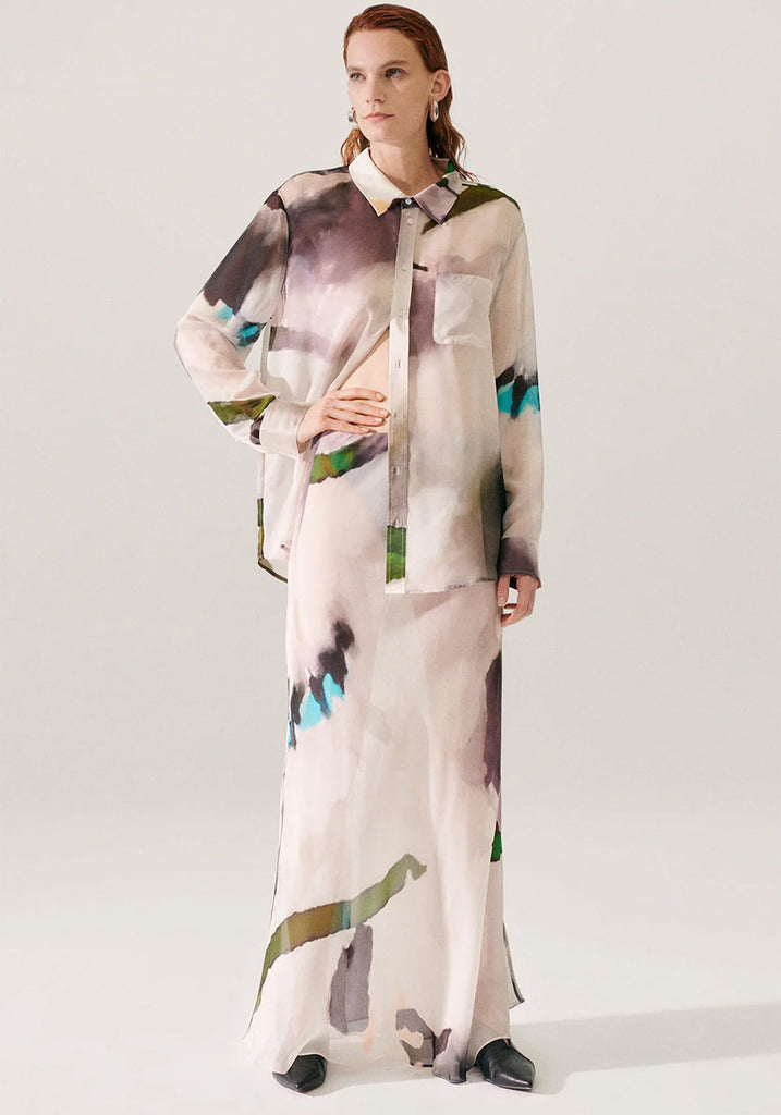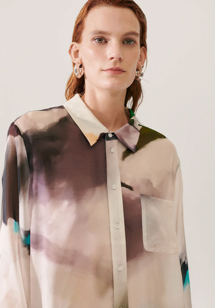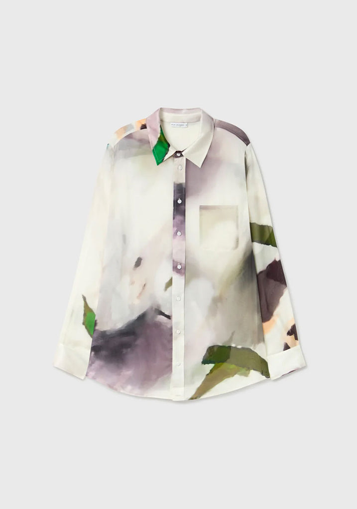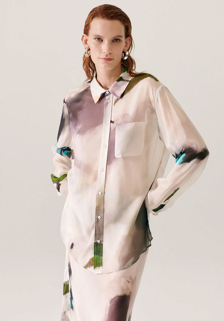 Designed to mimic our Boyfriend Shirt, this style is made with 100% silk chiffon. The relaxed fit is complemented with a button-down front, classic collar, and utility pockets to cater to everyday versatility.