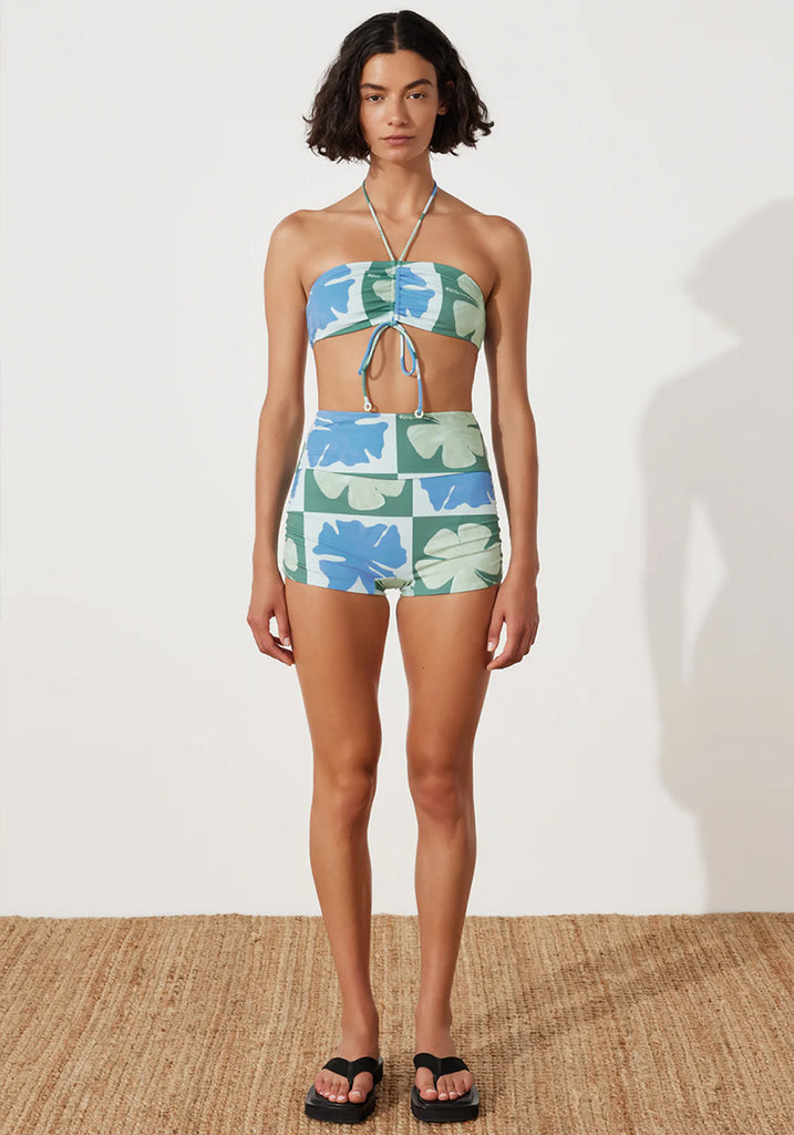 The Hibiscus Halter Top by Zulu & Zephyr is flattering for all busts and versatile in its design. It can be tied in multiple ways—straight up around the neck or at the centre front to convert into a bandeau. The hand-drawn Hibiscus print, created by our designers, adds to the timeless silhouette, perfect for sun-soaked days by the water