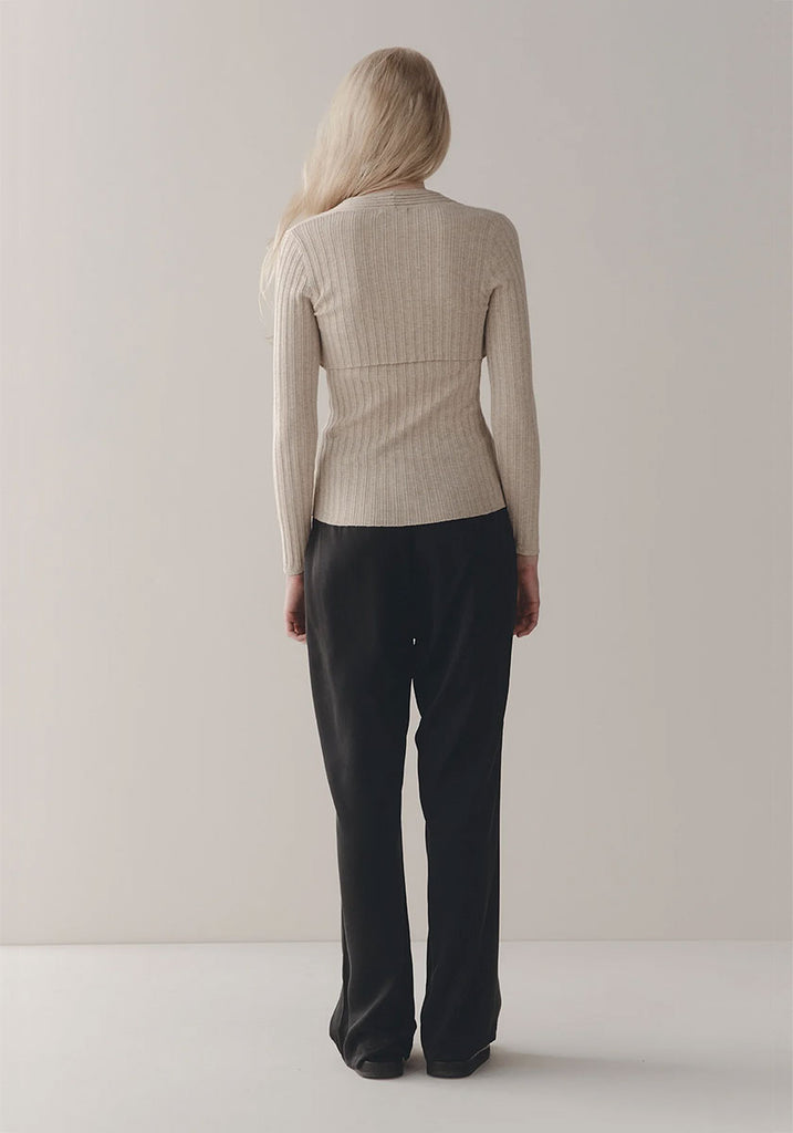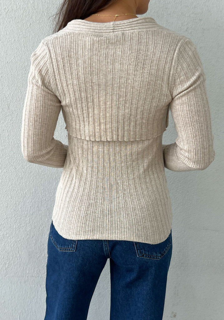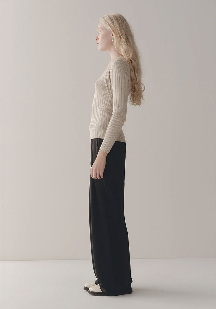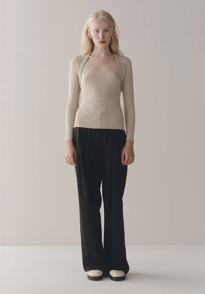 The Leon top is a lightweight ribbed knit crafted in our signature cotton / merino yarn. It features a fitted silhouette with long sleeves and a feminine square neckline. The top features two layers where the sleeves are stitched on as a separate piece giving a subtle layering effect.