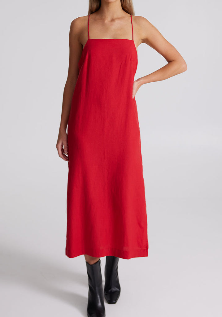Indulge in timeless charm with our Maxi Square Neck Dress in Barbados Cherry. This dress embodies elegance with its square neckline that beautifully frames the collarbones and shoulders. Crafted from a linen lyocell that drapes gracefully, it offers both comfort and sophistication.