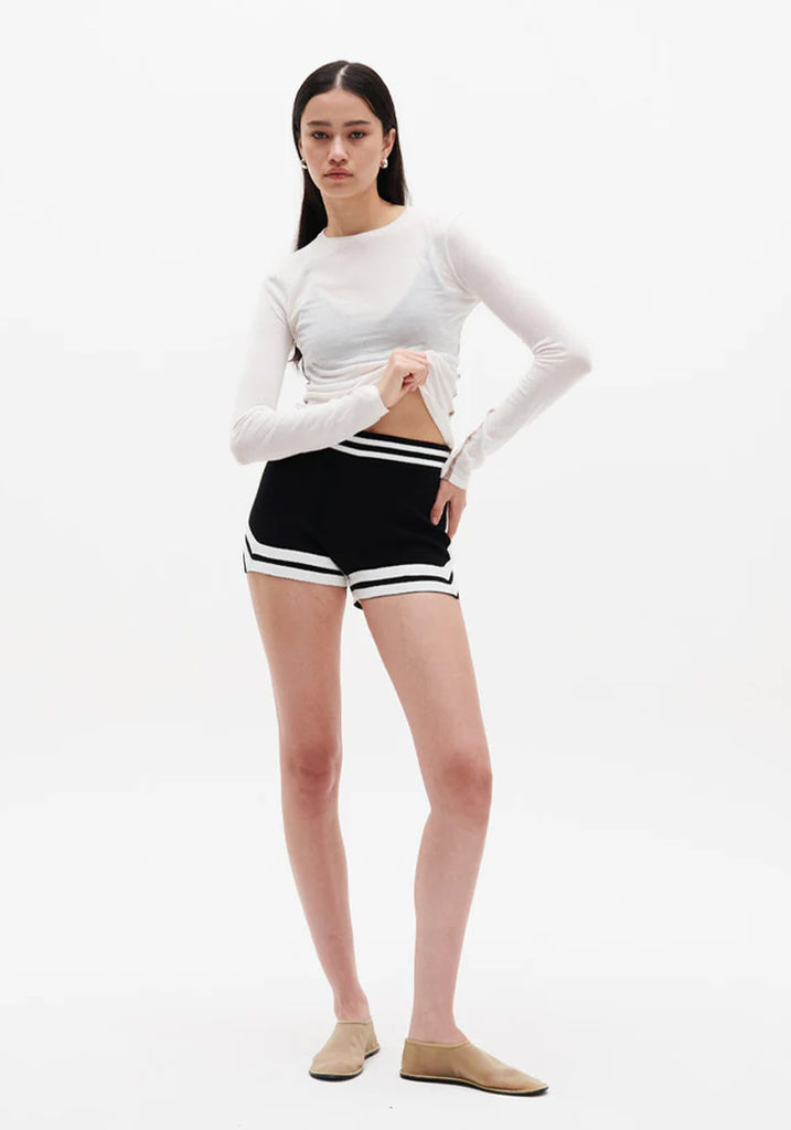 Nagnata’s original runner short. Designed to sculpt the body and frame your curves. Knitted from our signature organic cotton tech-knit fabrication, it features a custom knitted tape design shaped to elevate.