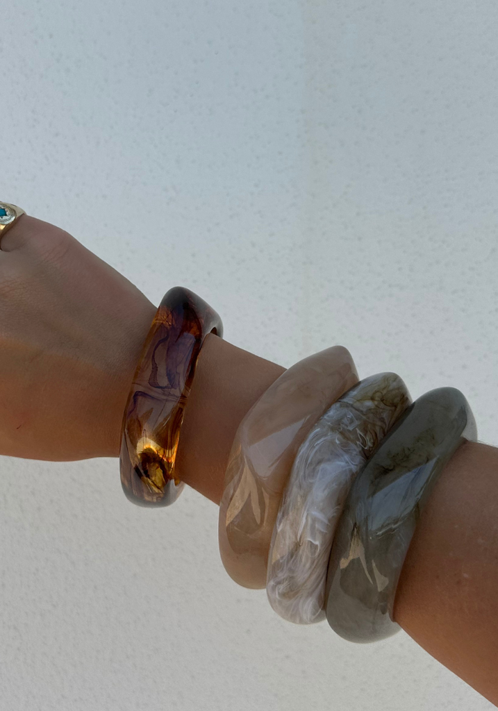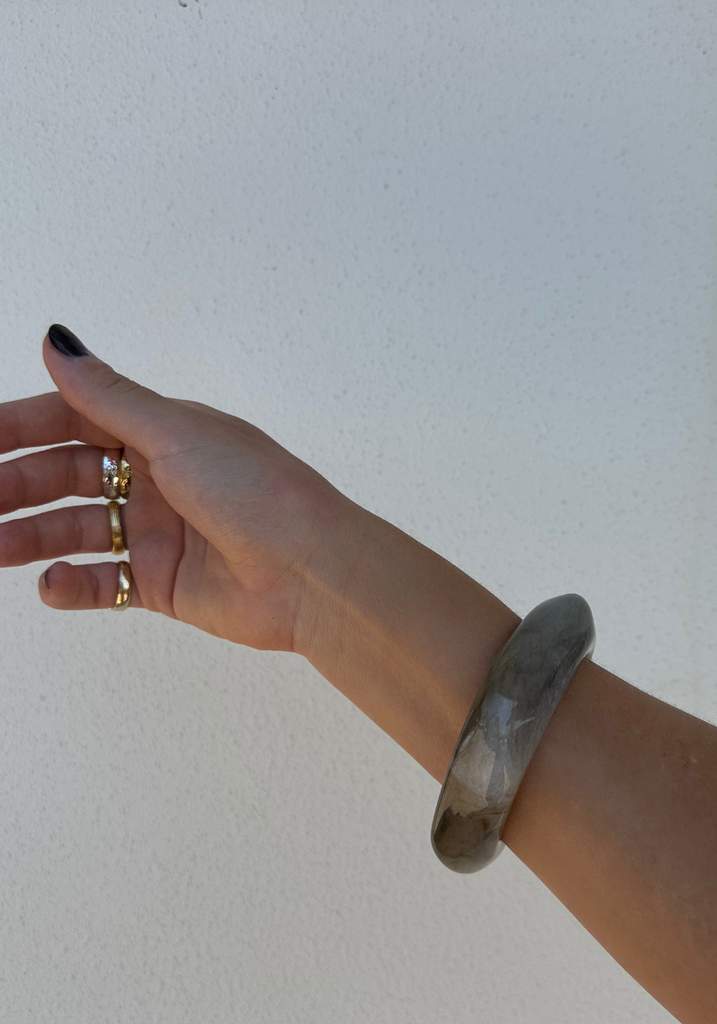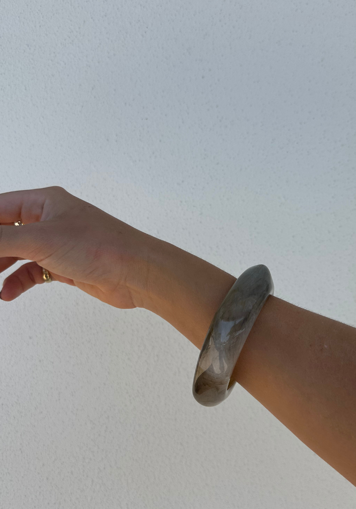 Chunky marbled resin bangle in Olive. A statement piece to elevate any outfit.