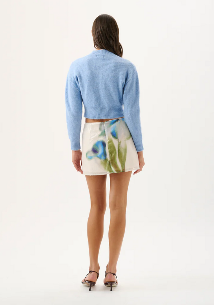 The Sabrina Mini Skirt, in our exclusive Starlit Lily print, is a true mini silhouette adorned with shimmering micro sequins. Finished with a centre back zip for a sleek fit, it’s effortlessly versatile; pair with a baby tee and sandals for day, or elevate with a crisp shirt and heels for evening.