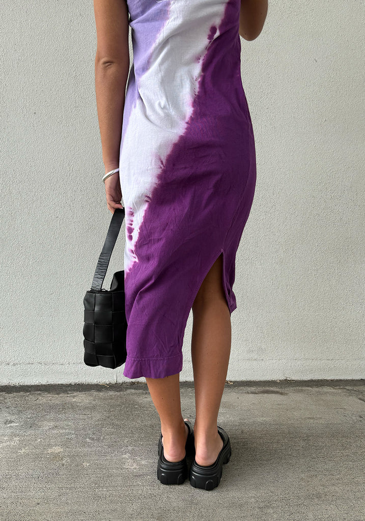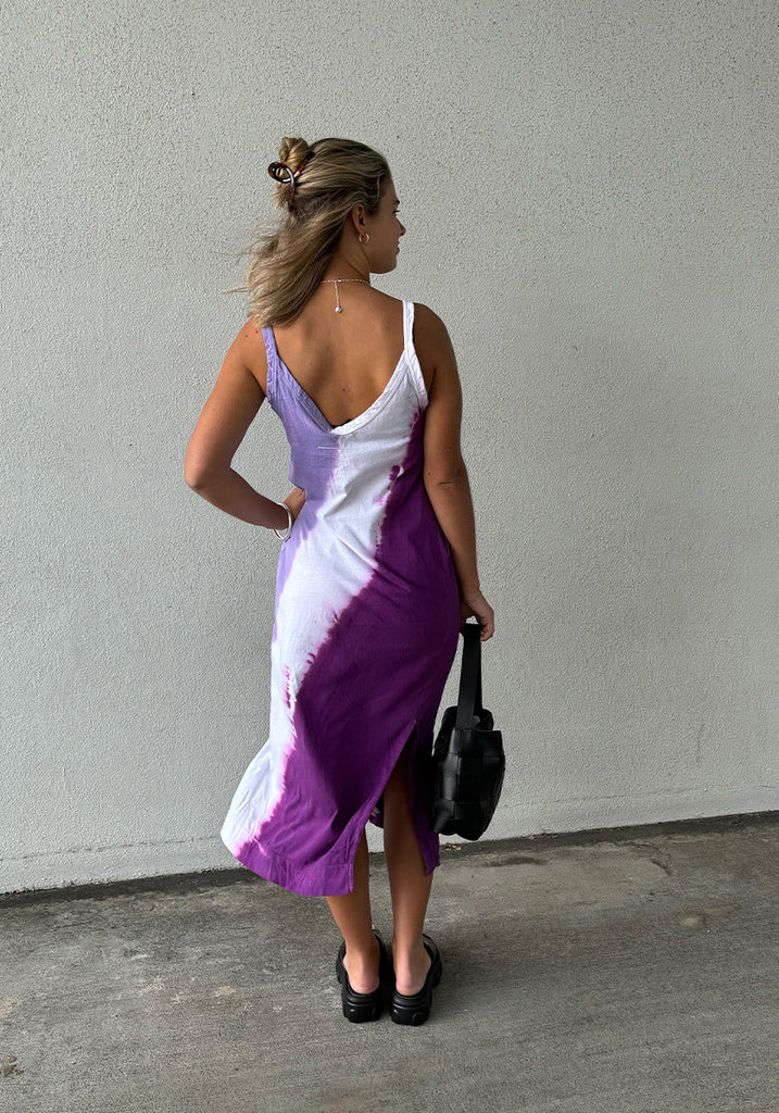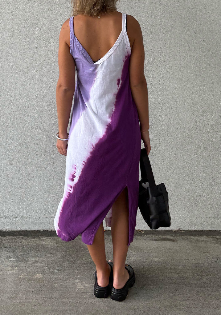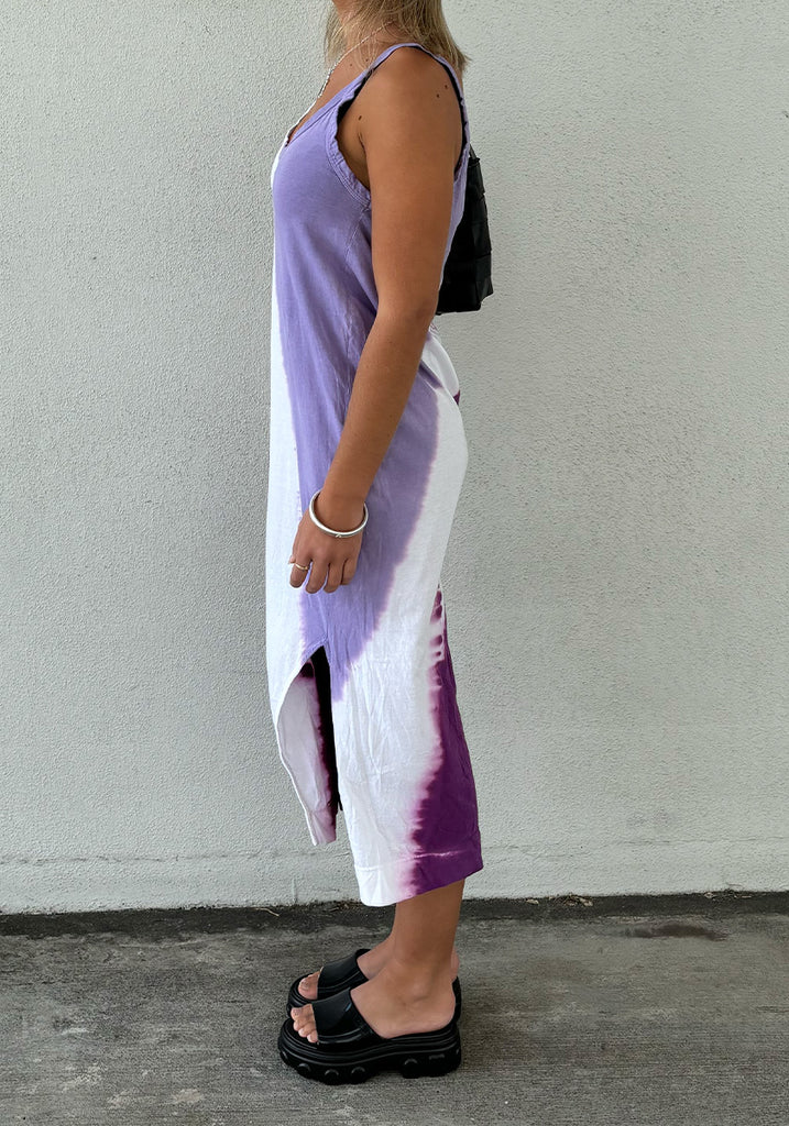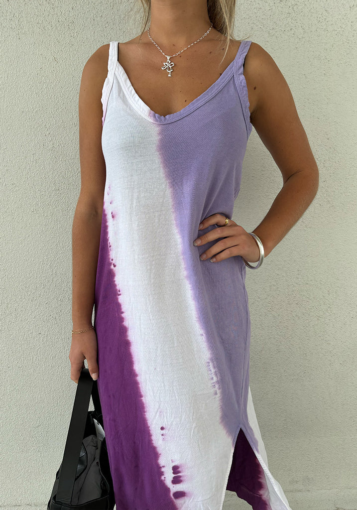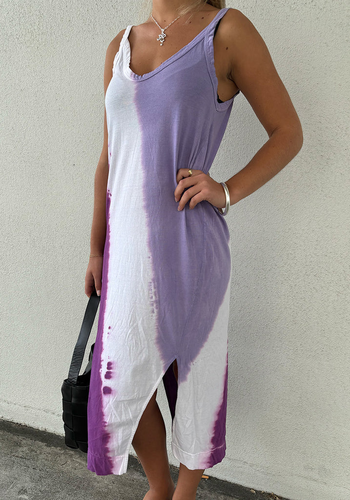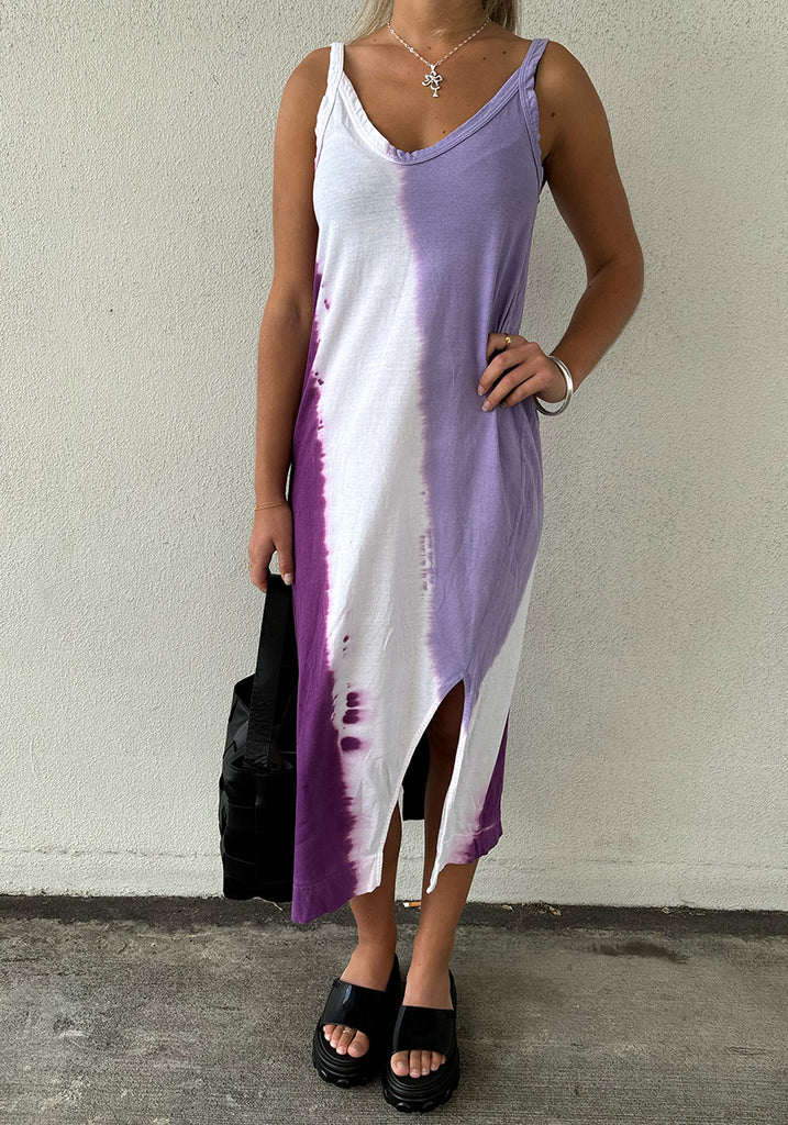 Dye V Neck Jersey Dress - Faded Lavender / White Violet