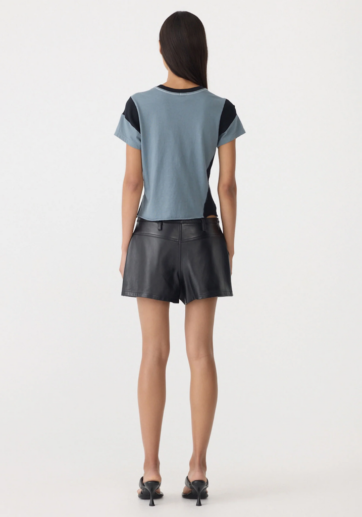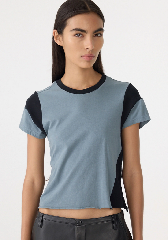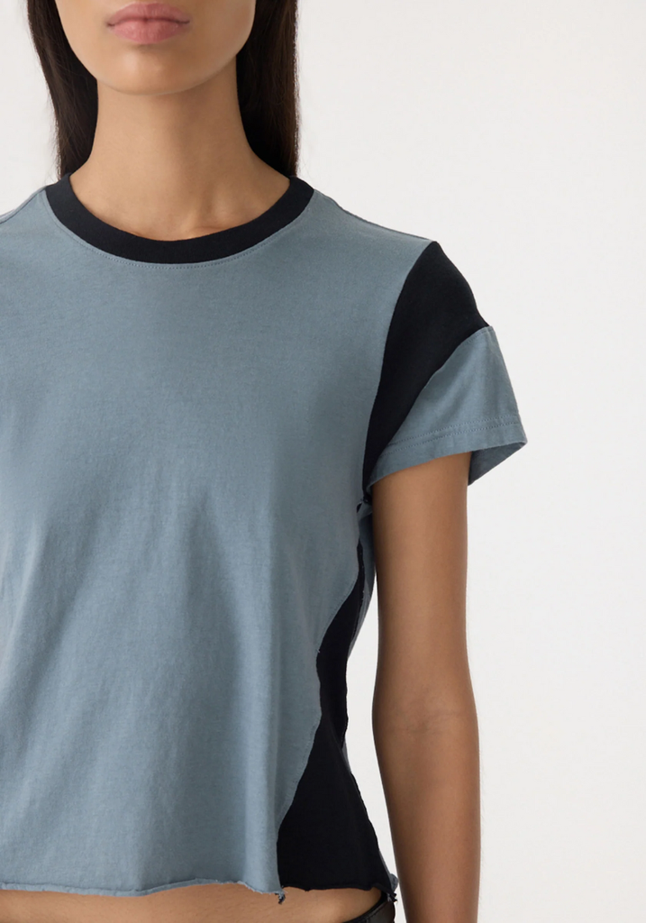 The Moto Baby T-Shirt is crafted from soft cotton with a streamlined silhouette. Designed with rib shoulder inserts and a self-insert at the side, it features contrast detailing, a ribbed neck, and raw hem for a relaxed, tactile finish.