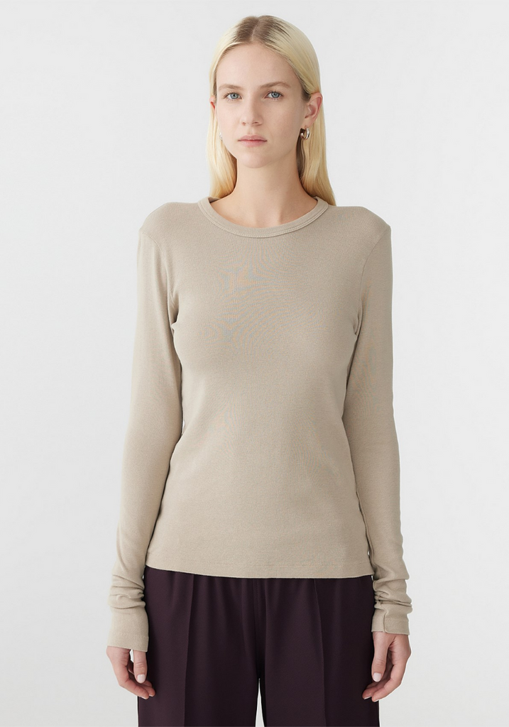 Crafted from organic cotton superfine rib knitted in Australia, the Slim Superfine Rib Long Sleeve T-Shirt is designed for a slim fit. This lightweight style features a classic crew neckline and signature Bassike chainstitch along the back. Complete with ribbed finishes along hem, cuffs and neckline.