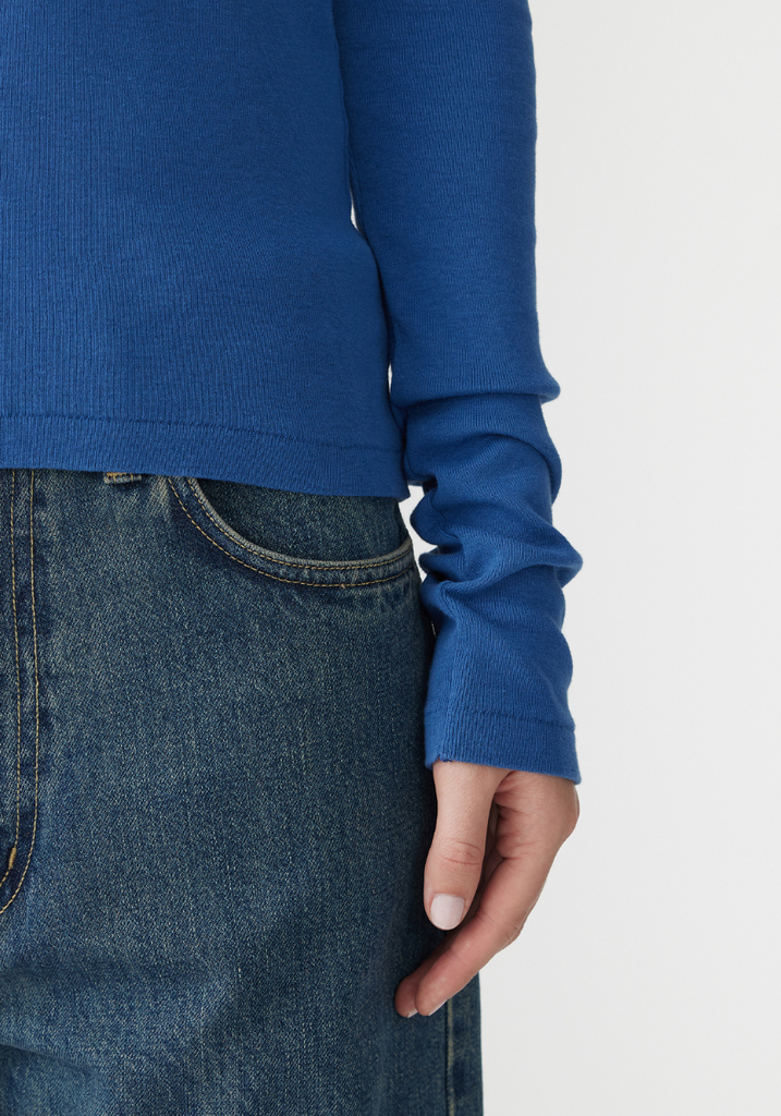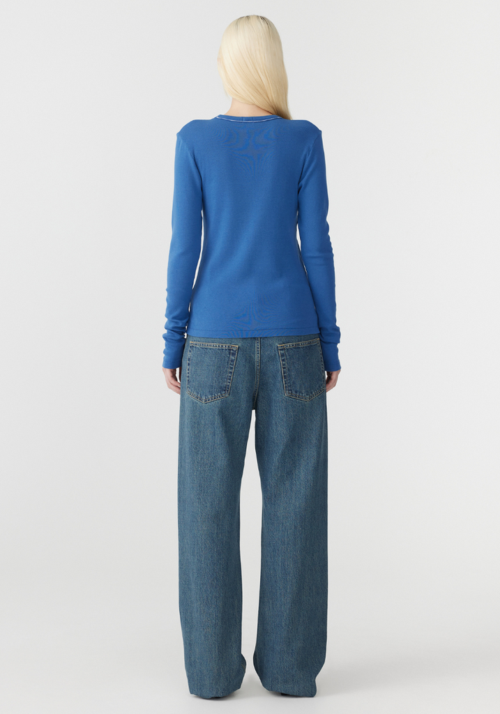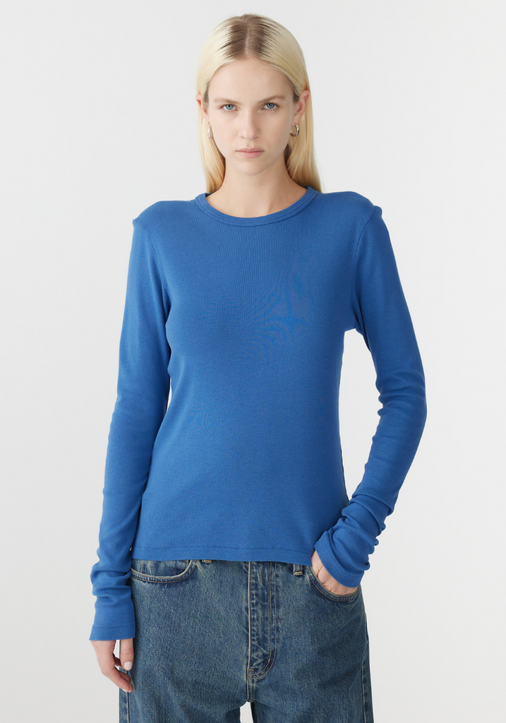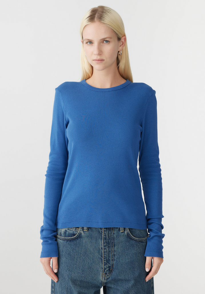 Slim Superfine Rib L/S T.Shirt - Marine Blue