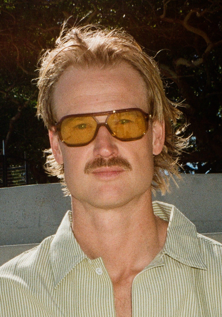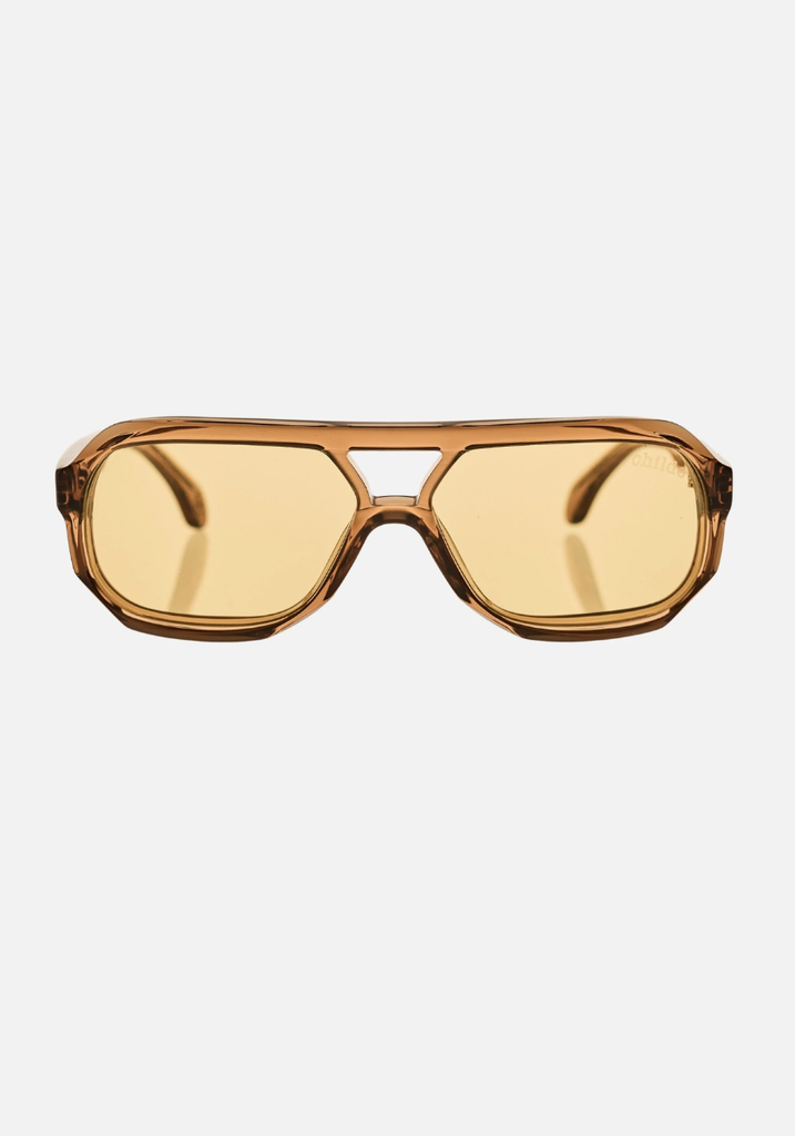 A chic retro-inspired rectangular aviator sunglass with signature bevelled edgings for smaller face shapes.