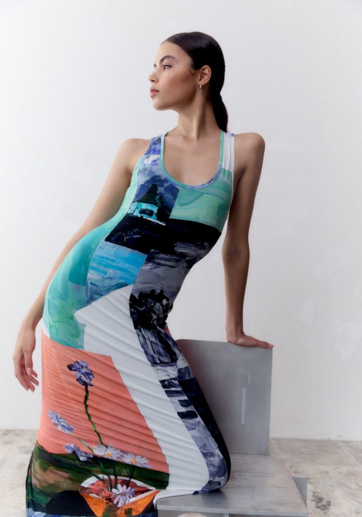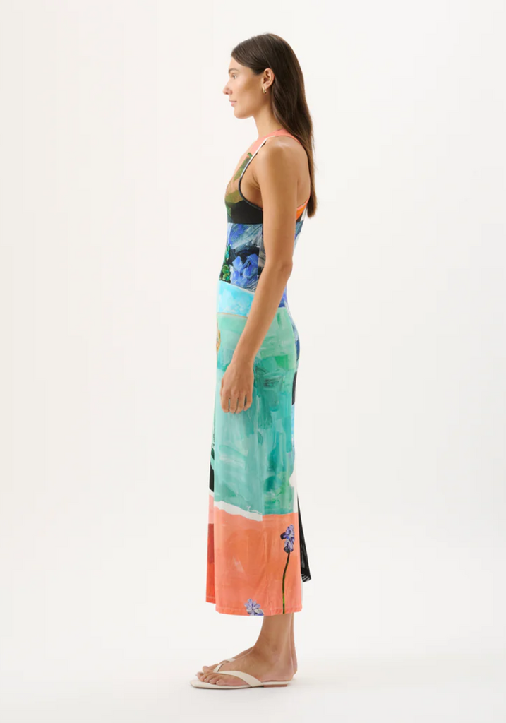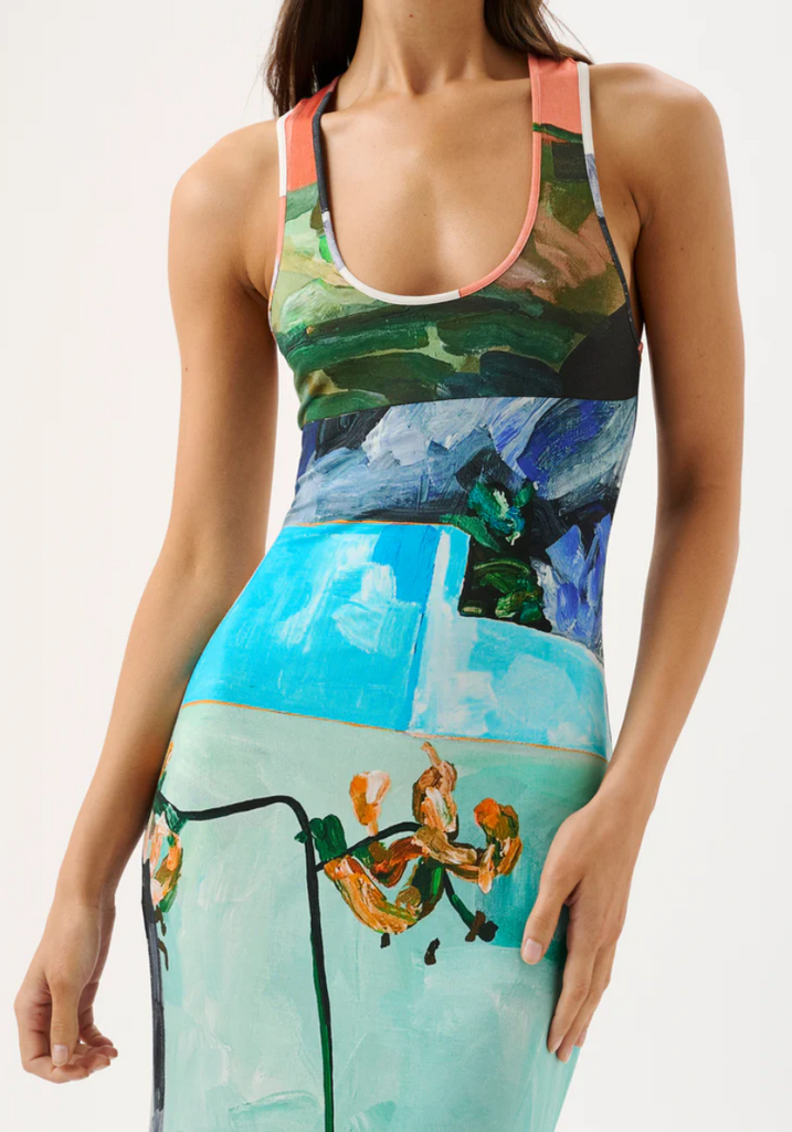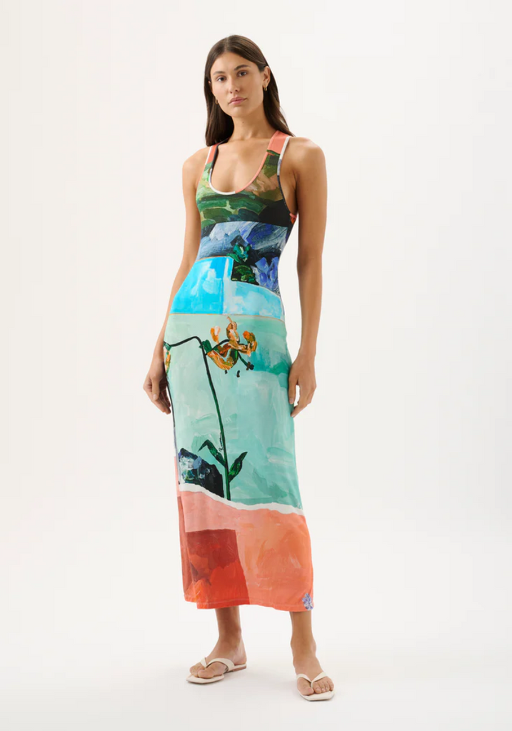 Discover the Phoenix Dress in the bespoke Wonderland print, an update on our bestselling Theodore Dress. Featuring a scoop neckline and racerback, the Phoenix Dress is crafted to flatter while effortlessly draping over the body. Style with sandals for a relaxed look or elevate with heels and fine jewellery for an elegant occasion. Please note print placement is individual and unique to each piece.