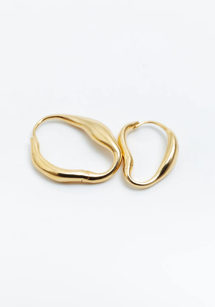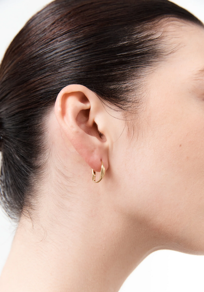 Minimalist and lightweight, an organic-shaped and formed hoop earring designed for comfort and daily wear.