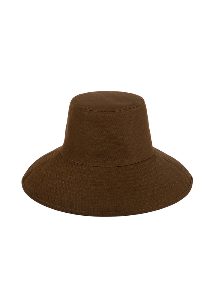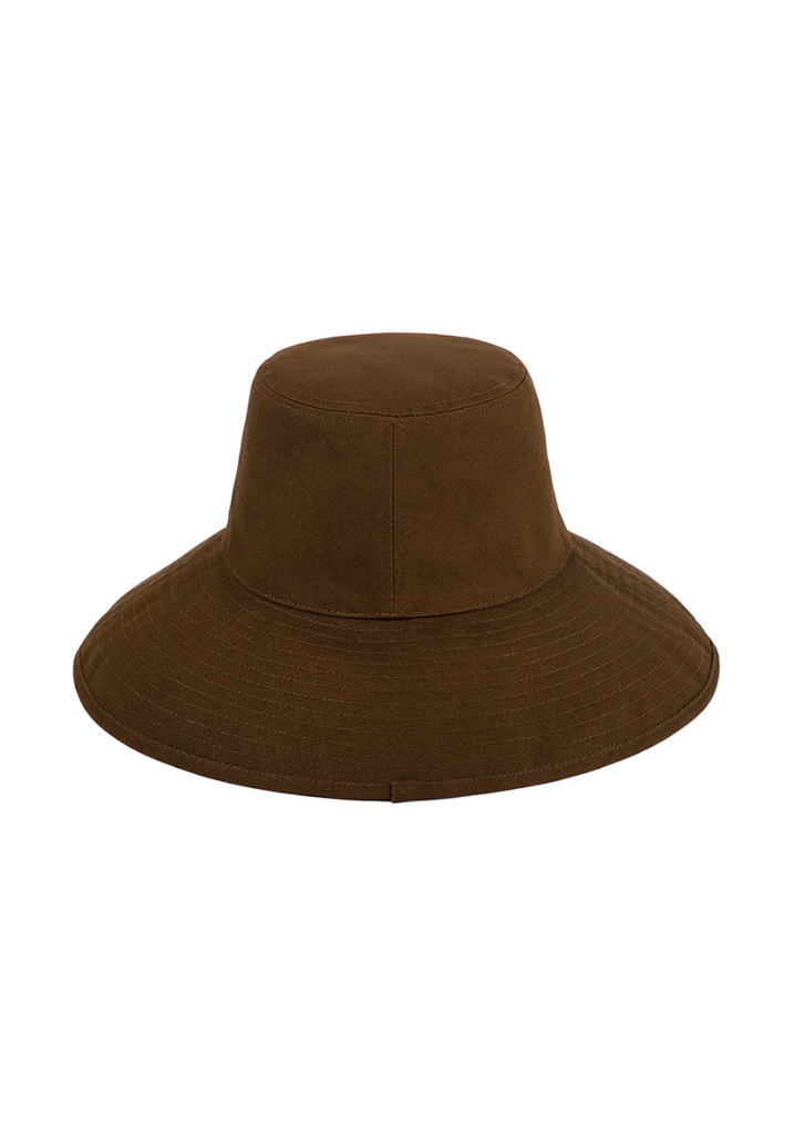 - Cotton canvas wide brim bucket hat in chocolate brown