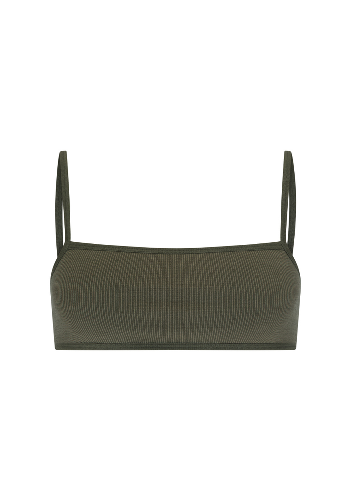 Merino wool seamless square-neck bralet in our signature two-tone rib facrication featuring strappy back design details. Fully lined, this superfine Merino wool style offers mild compression for support and breathability and features a fabric bind underbust.