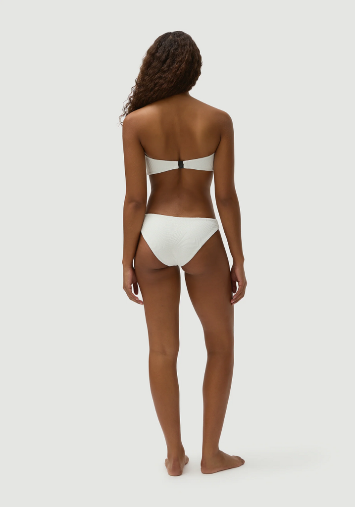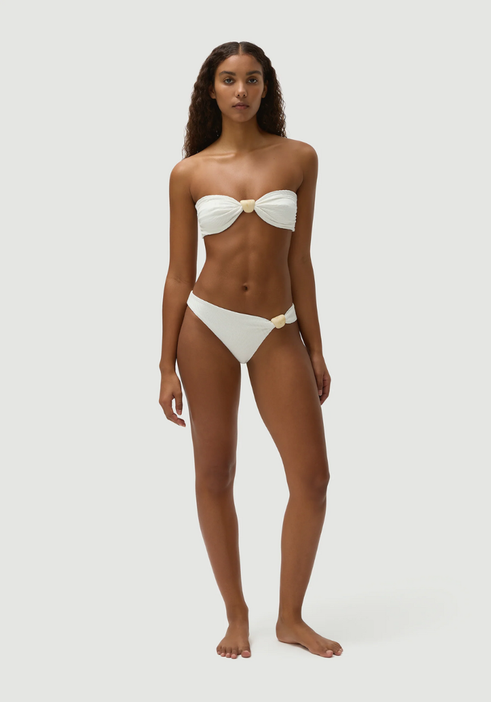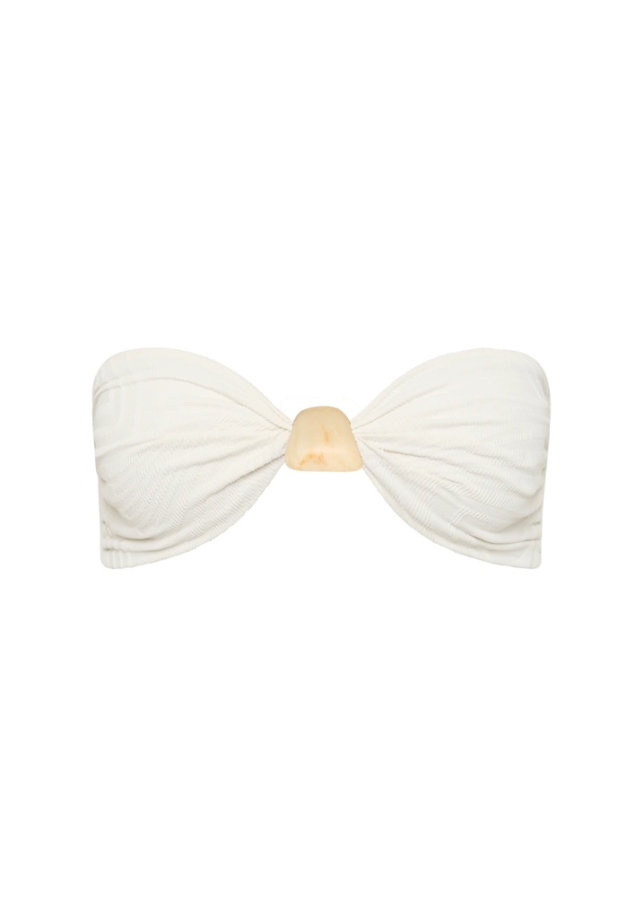 Bandeau top with a chunky Italian plexiglass bead.  Clasp at back, Boned side seams.
