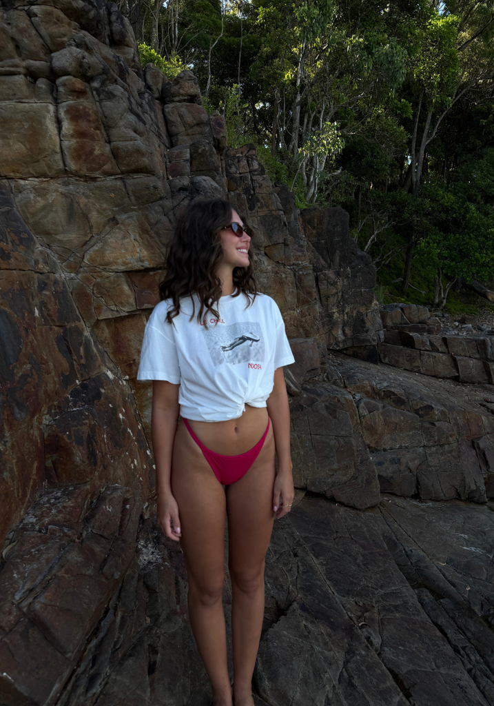 Elevate your beachside style with the Le Chill Boxy Tee - Blanc from Joyeux. Crafted from soft, breathable cotton, this tee features a relaxed boxy fit perfect for laid-back days. This tee embodies effortless beachy vibes and pays homage to the beautiful beach town of Noosa, where one of our boutiques is located. Embrace relaxed elegance with the Le Chill Boxy Tee – your new favourite summer staple.
