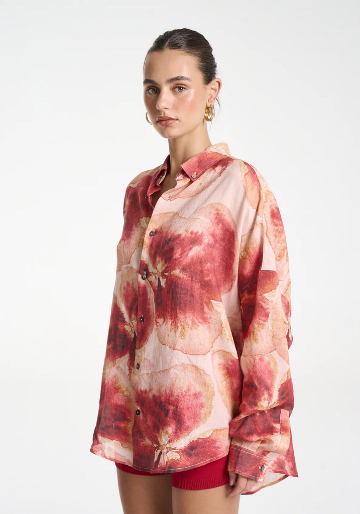 The LS Oversized Shirt featuring the hand-painted Aloha print has been expertly crafted offering a structured yet relaxed fit with cuffed sleeves.