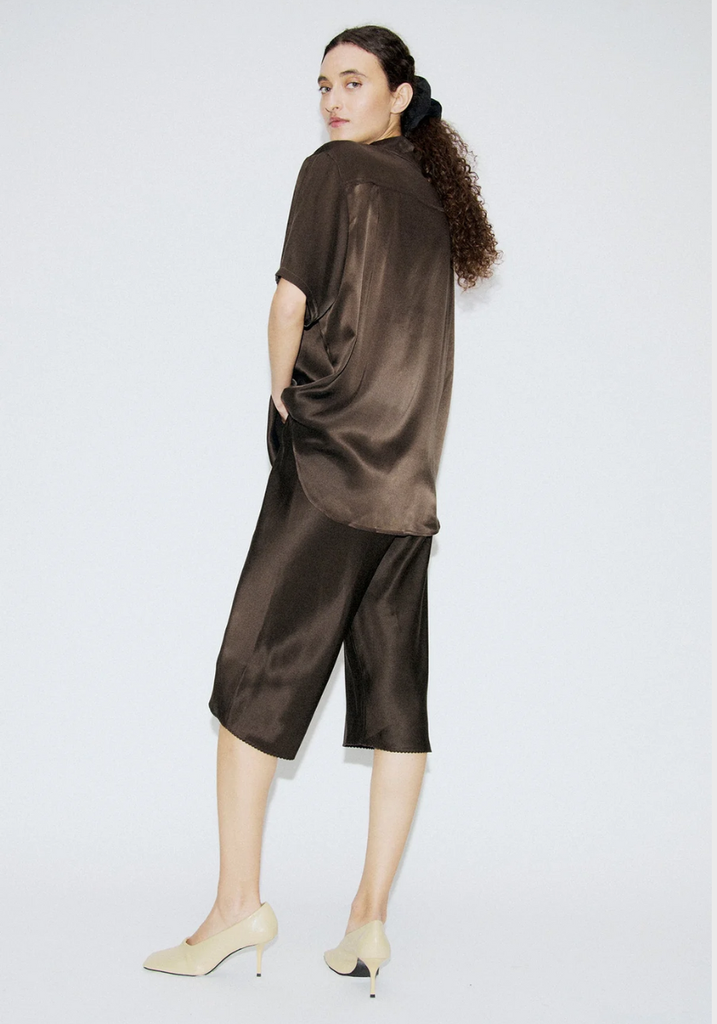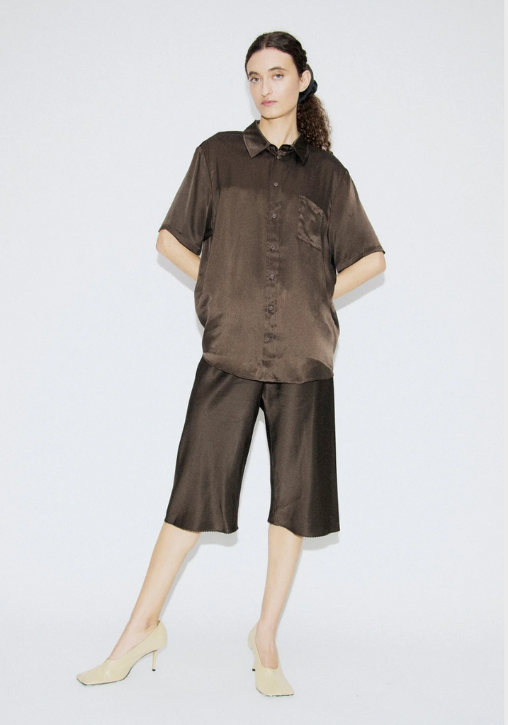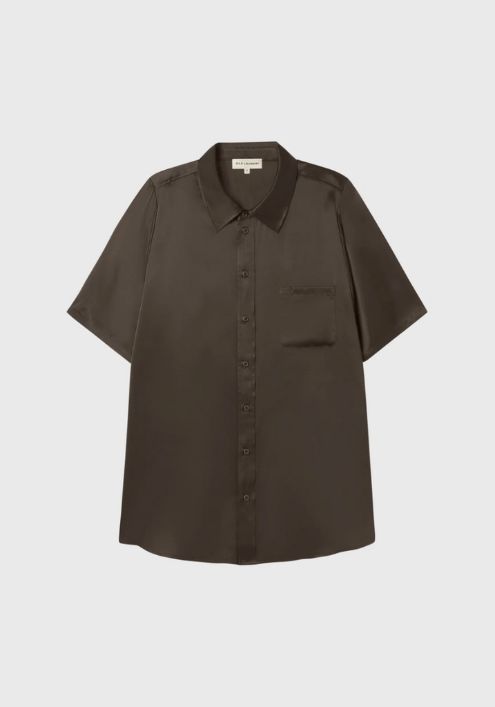 Silk Laundry Short Sleeve Boyfriend Shirt, made frorm 100% silk. An evolution of the original Boyfriend Shirt, offering a more relaxed fit, button-down front and pen pocket.