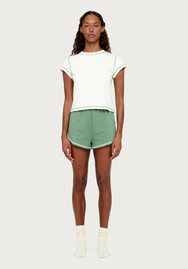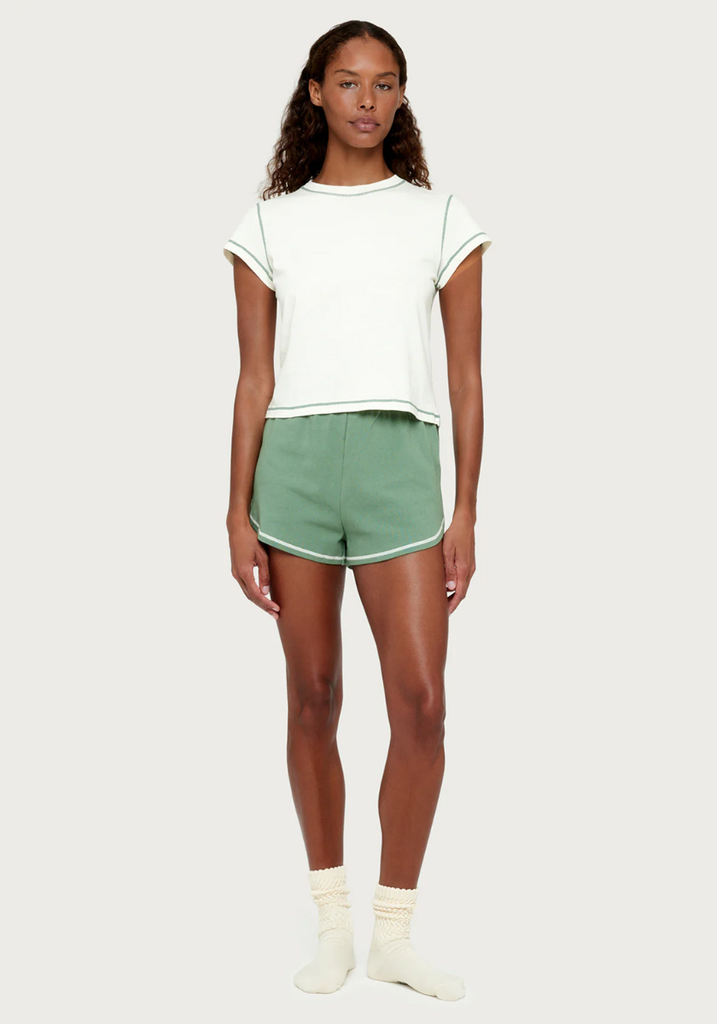 Contrast stitch - neckline, armhole, sleeve and body hem