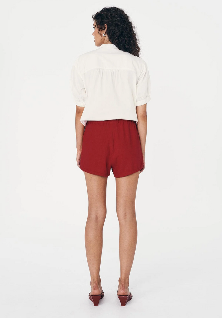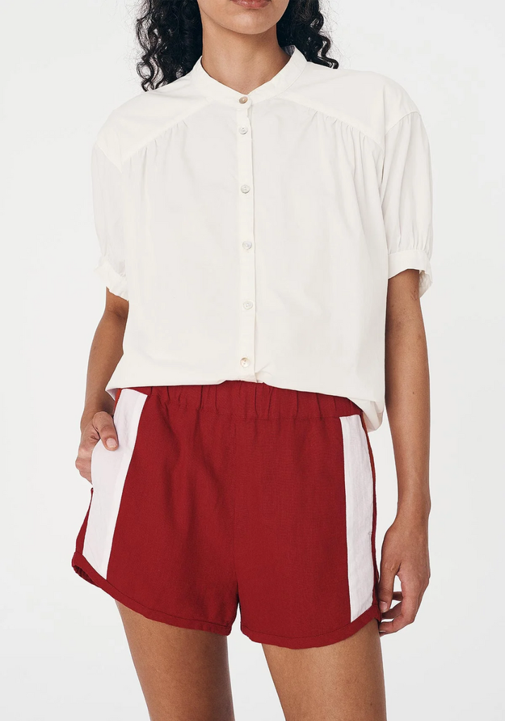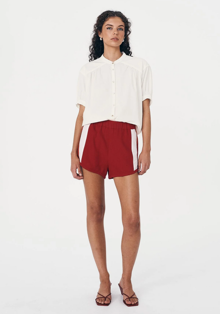 Curved hems and contrast side detailing set the Simone Shorts apart. Relaxed through the leg with an elastic waist and side seam pockets.