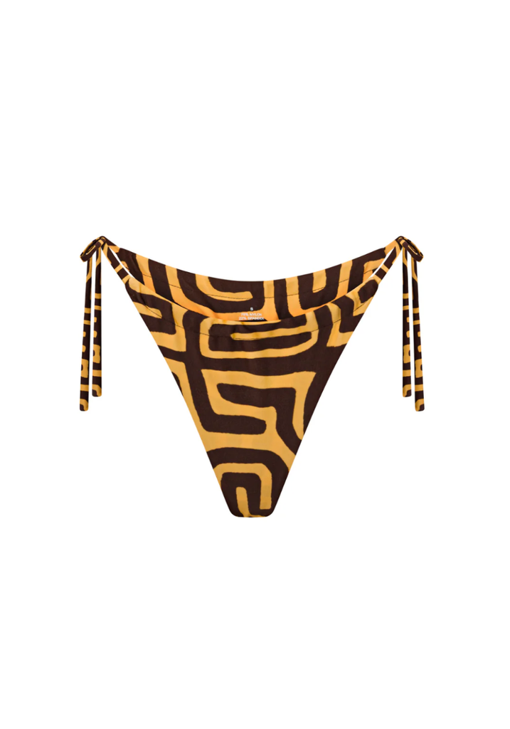 The “Desert Maze” Tie Bottoms are a flirty, Brazilian‑cut bikini bottom designed to accentuate curves with adjustable tie‑side straps for a customised fit. The minimal‑coverage cut and soft, second-skin feel fabric make this piece ideal for golden‑hour beach sessions, pool lounging, or simply sun‑soaked days with minimal tan lines.