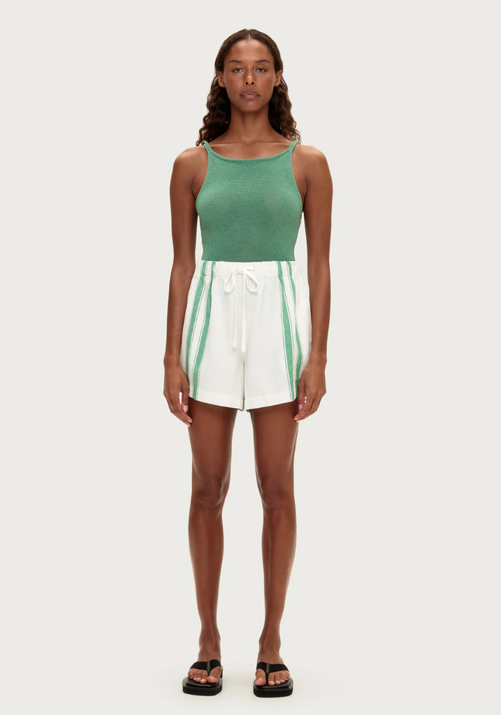A form-fitting tank made from a mid-weight, soft organic cotton blend yarn for a smooth, comfortable feel. Designed with a subtle scoop neckline and finished with fine knitted binding at the armholes and neck for a clean, refined look.