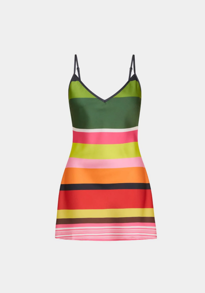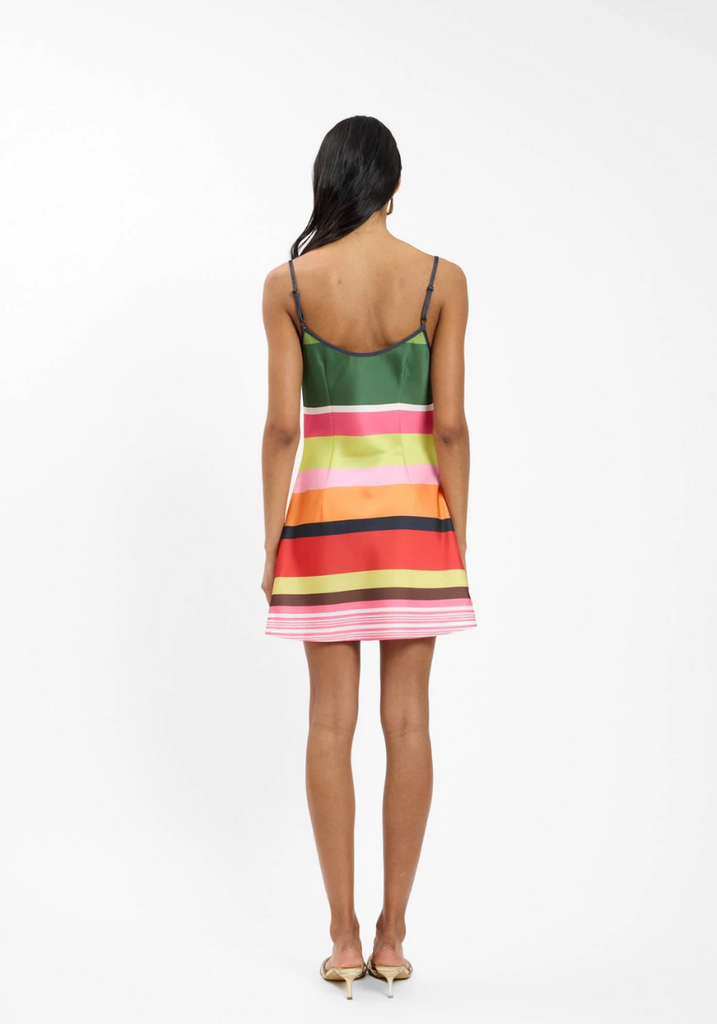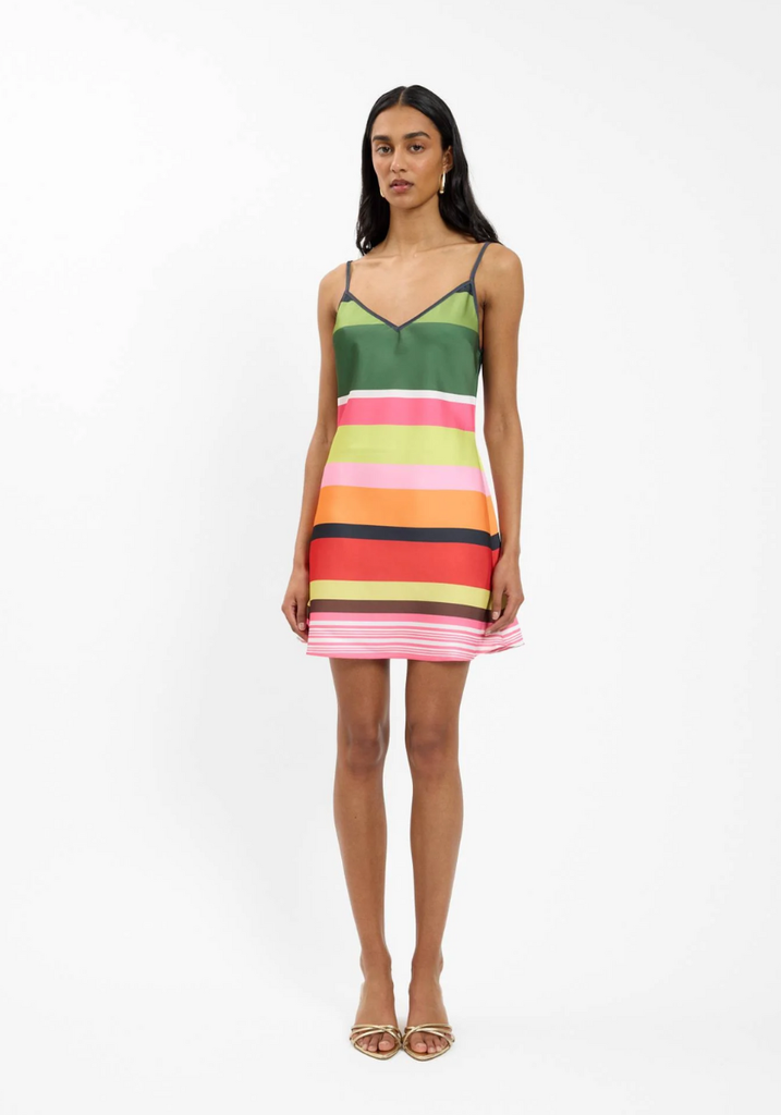 Discover the best-selling silhouette in the exclusive Emerald Stripe print. Cut on the bias for a perfect drape, this A-line design flatters the body effortlessly. Featuring striking colours, it’s the perfect throw-on dress for any occasion.