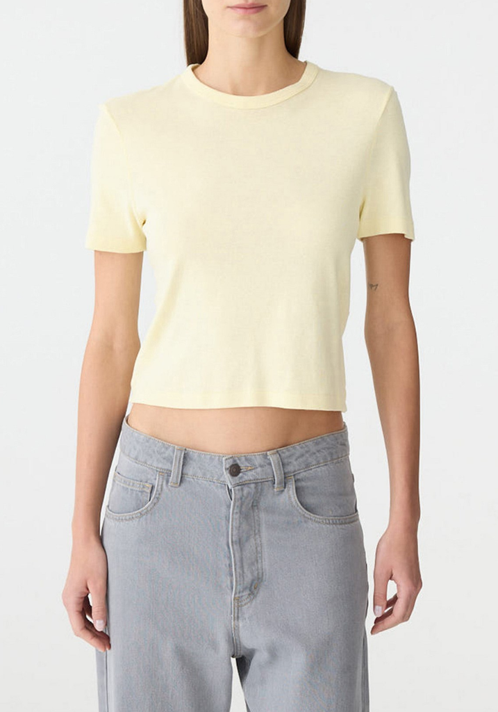 A slim-line minimalist staple, the Rib Baby T-Shirt is crafted in 100% organic cotton superfine rib knitted in Australia. The final garment boasts a classic crew neck in organic cotton rib, cropped silhouette and slim fit shape. Distinguished by signature Bassike contrast topstitching at back.
